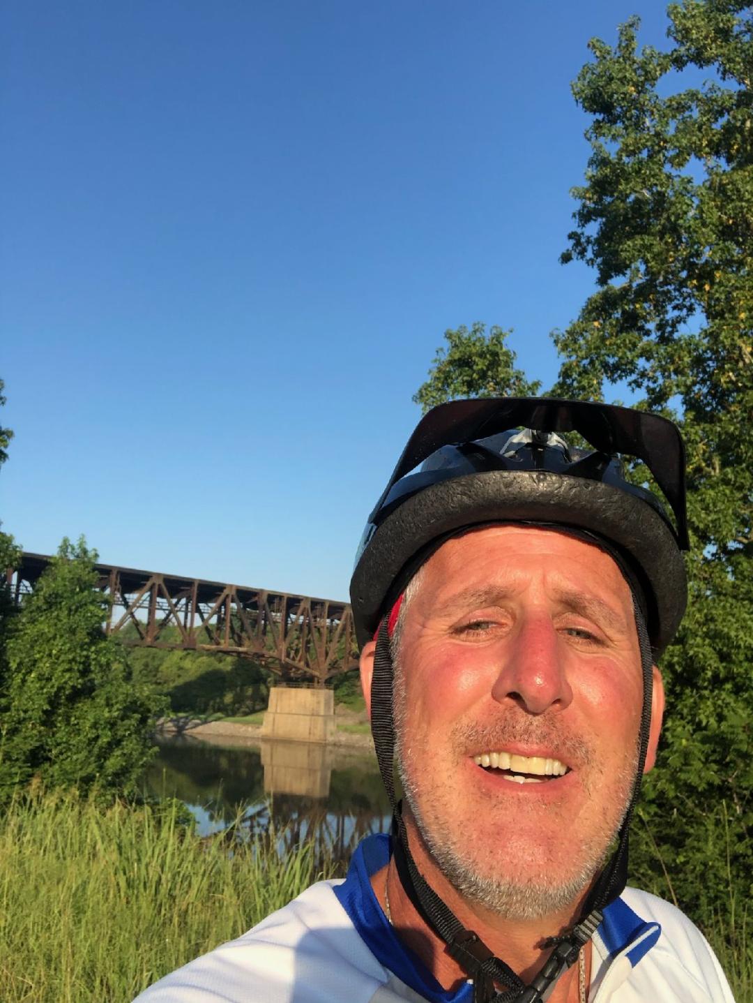Day 8. Felt very good this morning, very excited about the bike course that google maps helped me out with! I went against our original bike route to try and save 20 miles to get to the next destination. So off I went, about 14 miles into the trip, I seen "road closed"! This road was 16 miles of my 48 mile trip! There was a gate that was locked and a sign saying "no vehicles allowed". And the real bad thing was, it was gravel!!! If I turned back it would have probably cost me 20 miles! So what do I do...I go for it! My gps said 8.5 miles and then a little jog in the road. So I said, I can handle 8.5 miles of gravel if I take it easy. Off I go, I get to the 8.5 mile mark and my gps says to continue on for another 7.5 miles on the same gravel road!!! π¬π¬π¬π¬. So 16 solid miles of slow gravel road πππ. As it turns out, I made pretty decent time on the gravel road AND the scenery was awesome, it went right along a big river for almost the whole way there! I then met Andy around the 40 mile mark. ΕΈRight when I joined Andy it Happened!!! We finally seen our first bicyclists in 8 days!!! A group of 3! We then continued on and Ken met us at mile marker 45. We had a cocktail at roadside and arrived at Green Acres RV Park. The fanciest RV we have been to yet! It has a pool as well!!! So I made up an extra 20 miles with my hard and difficult shortcut but it was an adventure and I don't regret it!!! So we are now in for 528 miles. All is good, tomorrow we have a 55 miler!